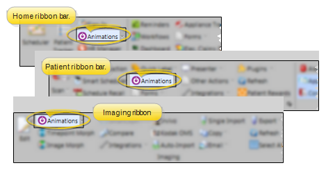 Select the Animations icon from the Home, Patient, or Imaging ribbon bar. (You can also open this feature from the Quick Access toolbar at the top of your Edge Cloud system window.) When it is running, the Animations icon appears in your computer's notification area.