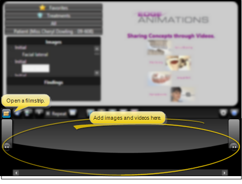 If you plan to work on or present filmstrips or videos that contain images or treatment information about a specific patient, it is best to open the patient folder first, then launch Edge Animations. This way, you can integrate the patient's images into your filmstrip and customize them with your patient findings.