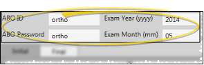 At the top of the screen, enter your ABO identification number and password for electronic submission, as well as the year and month of your exam.