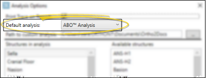 SmartCeph andABO Case Submission Integration - To be able to use the full set of ABO-required structures for the ABO Case Submission integration in Edge Imaging, you must select the ABO Analysis as your analysis. See "Analysis Options" for details.