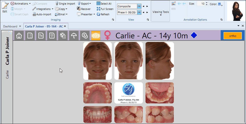 You can copy one or more individual patient images, as well as all an entire layout to your clipboard.