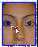 Enable Red Eye Removal (or hold down the Shift key on your keyboard). Click the image to work with. The image may magnify automatically, depending on your Red Eye Auto Zoom settings in your General Imaging Options. Position your cursor at one corner of the eye to work with. (You may wish to first Move the image so the eye area is centered in the window.) Then click and hold your left mouse button while you drag the cursor to select the eye area to fix. Release the mouse button to apply the changes.