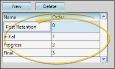 Add a New Time Point - Click New. Select New Time Point in the Name column and type a descriptive name. Assign the order you want this timepoint to appear in relation to all other timepoints.