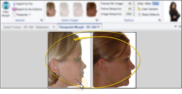 Use Timepoint Morph tools to seamlessly blend one image into another, creating an animated presentation of the changes that have occurred over the course of the patient's treatment. You can use any image type, and any number of timepoints when you create the morph. You can view the animations immediately, save them as independent video files, email them to patients and parents, upload to Facebook, or export them to Edge Animations.