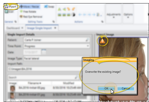 If you are importing an image (or images) that will overwrite an existing image in this time point, you must confirm your action before continuing.