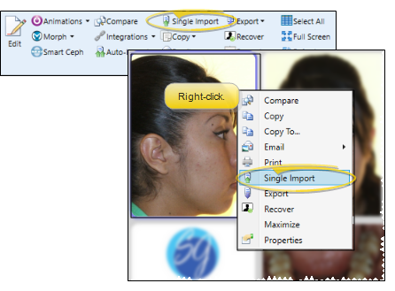 Right-Click Imaging Layout - While viewing a patient's images, right-click an image you want to replace and select Single Import.