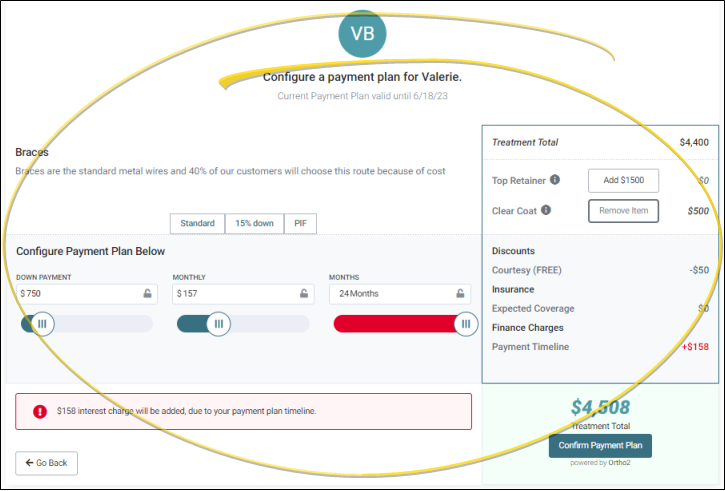 After you activate a proposal for a patient, you can share it with responsible parties, inviting them to take the reins, choose their treatment options, and design their own payment plan with the Edge Proposal app.