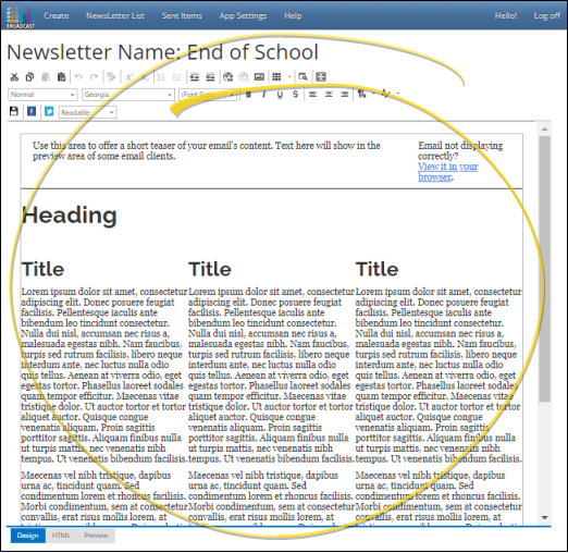 HTML - Do not use this tab unless you are extremely comfortable with editing HTML code. Even small errors could prevent your newsletter from functioning correctly.