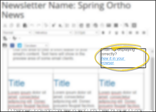 By default, the top right of your newsletter template includes a link that recipients can click to open the newsletter in a web browser, instead of their email window. We highly recommend that you keep this link intact, especially if you make extensive use of images and hyperlinks in your newsletters.