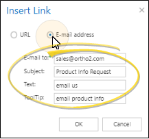 Email To - Enter the email address to whom you want to send a message when readers click on the link. Readers will be able to see this address in the email message.