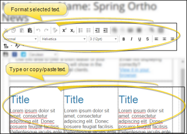 Use the Edge Broadcast newsletter editor to enter text, hyperlinks, images, and social media posts you want to deliver to your patients, parents, and professional associates. We recommend you stick to your message, and keep your newsletter layout and text simple. Note that background images, animated GIFs and embedded video are not fully supported.