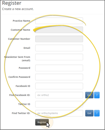 After completing the registration fields, click Register at the bottom of the window to complete the process. You're now on your way to sending electronic newsletters to your patients, parents, and professionals.