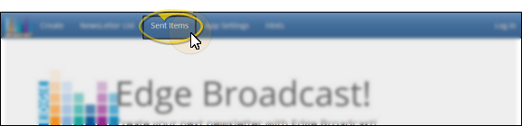 Click Sent Items from the Edge Broadcast ribbon bar at the top of the screen. (If you are not already logged into Edge Broadcast, enter the email address and password associated with your Edge Broadcast account.)
