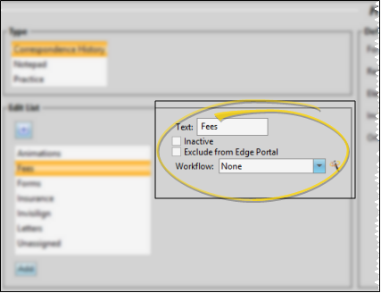 Workflows - (Correspondence History and Practice categories only.) Select an existing workflow, or use the Workflow Wizard icon to create a new workflow to assign to this category. When you enter an item that is assigned to this category into a correspondence history, the assigned workflow (if any) will be triggered automatically.