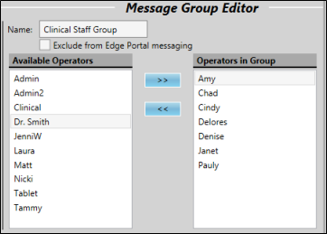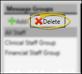 - Right-click a message group name in the available staff or recipient list, and choose the action you wish to perform. You can delete a group from your system, rename a group, and edit the individual members that comprise the group. All actions affect your Message Groups editor immediately.