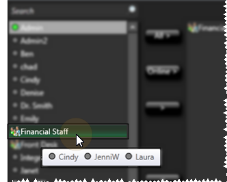 - Hover over a group name in either the available staff or recipient list to see the individual staff members that are included in the group.