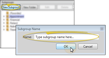 Copy / Paste Subgroup - You can also right-click an existing subgroup name and select Copy, then right-click a folder name and select Paste to create a duplicate subgroup in that folder that you can edit as needed. After copying a subgroup, be sure to edit the name so you can tell the subgroups apart later.