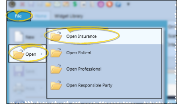 Select the File ribbon bar, then hover over the Open icon. When the options menu appears, click Open Insurance. (You can also open this feature from the Quick Access toolbar at the top of your Edge Cloud system window.)