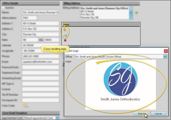 Use the Office editor to identify office locations in your practice. The patient's financial transactions and appointments default to the office assigned to the patient folder. Much of the data entered in this editor links to the Contact page of your Practice Connect app. If you use Online Scheduling, your Scheduler chairs must be assigned to office locations, and prospective patients can optionally see the office logo you enter here on their form they fill out to book an appointment with you.