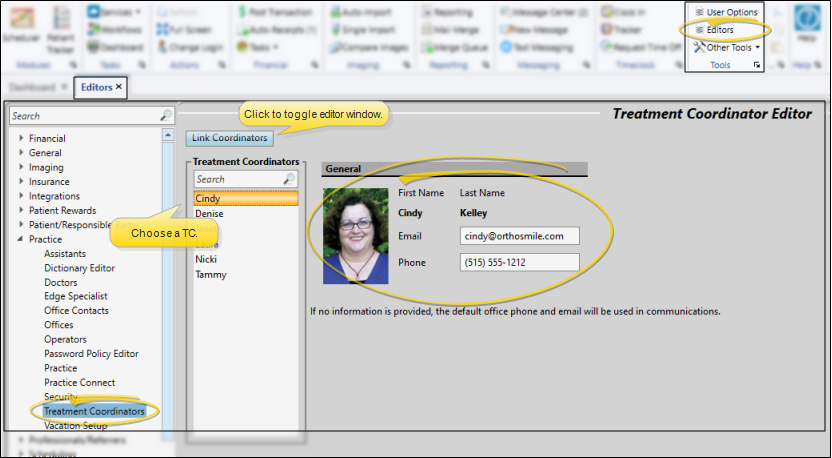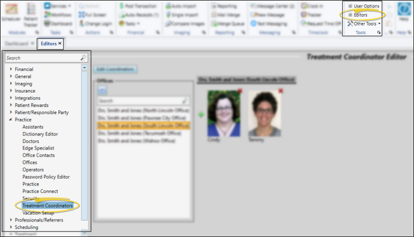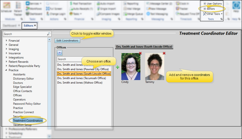 Open the Treatment Coordinators Editor