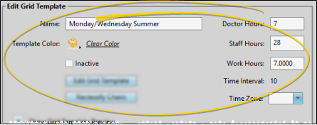 The time interval appears on this screen for your reference: You cannot change the time interval or time ranges for this template here. If you need to change times, click the Edit Grid Template button, and use the Modify Times tool in the Grid Template Editor.