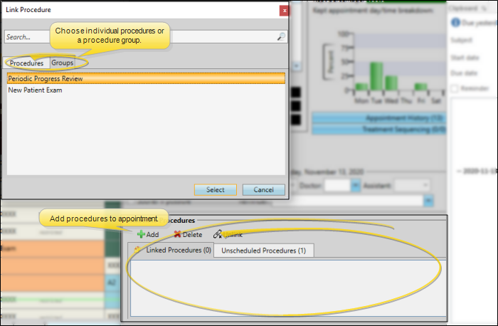 When you link procedures to a patient appointment, you can choose to apply procedure groups, rather than individual procedures.