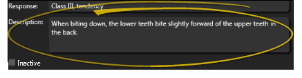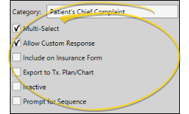 Allow Custom Response - Enable this option if you want to be able to add a unique response for this category into your patients' Findings records. If this option is disabled, you must choose a response from your list.