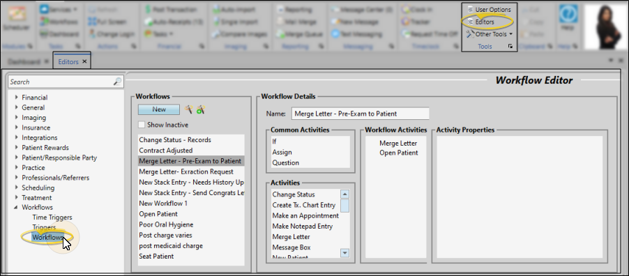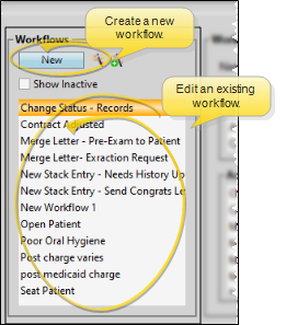 You can also assign workflows to specific records in the Status editor, the Appliance editor, the Appointment Type / Procedure editor, the Online Scheduling editor, and your Treatment Chart lists to further automate your practice.
