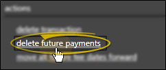Delete Future Payments / Write Off Account - Click the delete future payments action to erase all transactions that are scheduled to be charged out in the future. You can then reallocate the fee with a new payment schedule, or apply an adjustment for the unallocated amount to write off the fee.