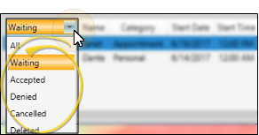 Click the filter at the left of the queue at the bottom of the calendar window to select the request status to view.