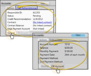 Accounts that are successfully linked between Edge Cloud and OrthoBanc appear in the Accounts section of the window. You can click the responsible party name at the top of the account to open that person's Edge Cloud responsible party record.