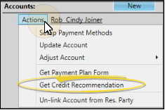 If you have the optional OrthoBanc credit check service, you can use the Get Credit Recommendation account action to initiate the process. Your Edge Cloud system will contact OrthoBanc with biographical and contract data from the patient folder. OrthoBanc performs a credit check and prepares a recommendation. The recommendation will be saved in the patient's correspondence history.