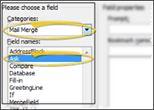 Select Mail Merge in the Category box, and choose the Ask field name option. Click Ok to accept your choice and insert the code into your document. (If you wish, consult your Word documentation for details about setting up other "switches" for this type of code.)