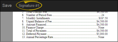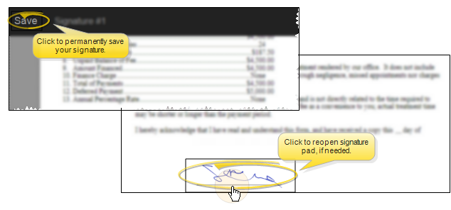 The document appears on your screen again, along with your signature. If you're satisfied, click Save at the top of the document window. You can also click the signature area to open the signature pad again and start over.