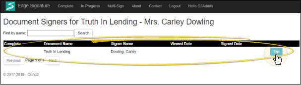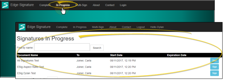 Use the Edge Signature Service to view and sign documents in progress, as well as view completed documents.