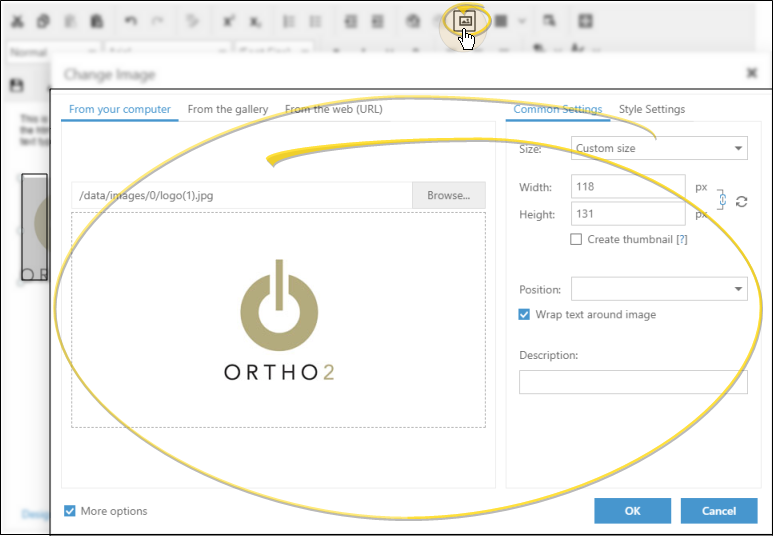 From the Web (URL) – To use an image from the Internet, right-click the image on the web page and select Copy Link Address. Then, select this tab, and paste the copied URL into the space provided. To save the image in the gallery for future use, enable the Save File to Server option.