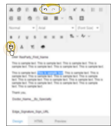 Use the Save icon (or press Ctrl+S on your keyboard) to save the changes you have made to your document, while leaving the HTML Editor window open. You can continue to use the Undo and Redo icons (or press Ctrl+Z or Ctrl+Y), even after saving, until you exit the editor. When finished, click the X in the upper right corner of the window.