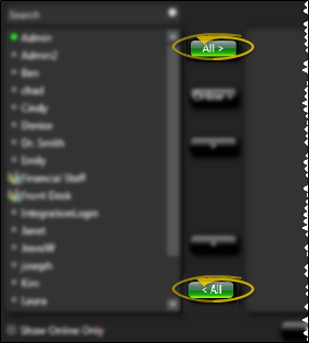 Show Online Only Option - Enable the Show Online Only option at the bottom of the window to include only operators currently logged into Edge Cloud in the list. If this option is disabled, online staff members will be indicated by a lit button beside their names.