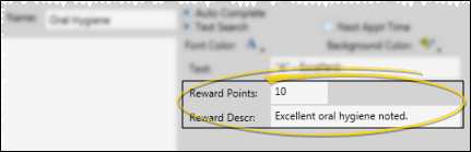 Use the Treatment Chart List Editor to assign patient reward points when specific responses are entered into the patient's treatment chart.