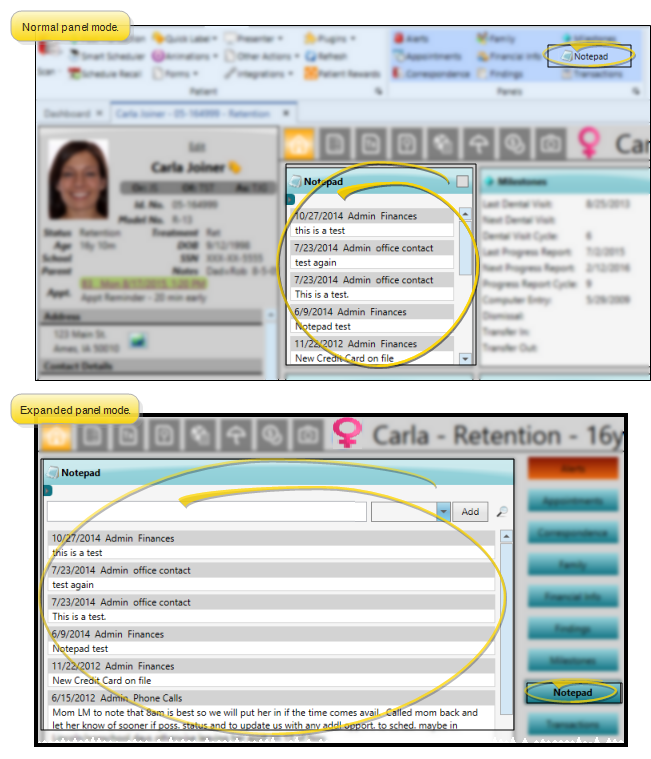 As soon as you click Post, the note, along with today's date, is added to all patients that satisfy the subgroup criteria. You can view the notes from the Notepad panel of the patient folder Home page. See "Patient Notepad" for details.