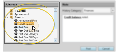 Choose Subgroup - Select the subgroup of patient for whom you want to post the note. See "Subgroup Editor" for details about creating your subgroups. You can only choose patient subgroups: You cannot send a note to a subgroup of professional, referrer, insurance or HR Manager records.