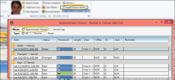 Open the Appointment History