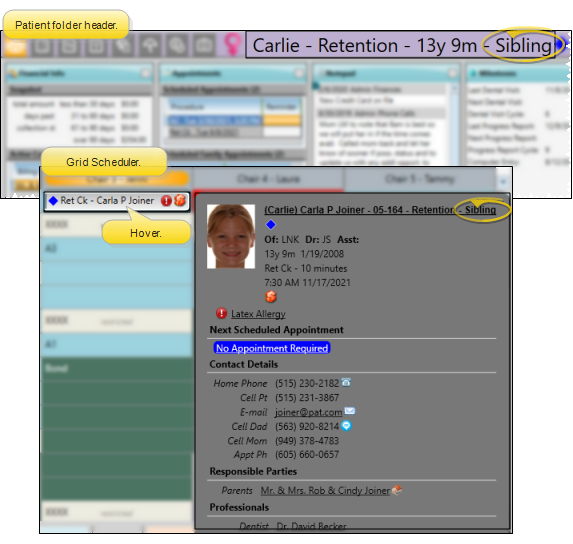 Visual Tags - Visual tags are displayed in the patient folder header, responsible party record, post transaction window, Smart Scheduler, appointment hover, and optionally on your Patient Tracker and Scheduler appointments.See "Visual Tags" for details.