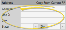 Copy From Current Patient - (Available only when creating a new patient folder.) If the patient is also the responsible party, you can fill in the Patient address at the right of the New Patient window, then click the Copy from Current Patient in the responsible party section of the window link to auto-fill the address to match. If you had already entered information into some of the responsible party address fields, they will be overwritten by the patient information.