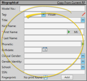 Enter the patient name, birthdate, clinical and preferred gender, and other basic biographical information. You can also enter the patient's secondary identification code, if needed.