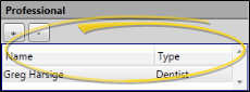 Delete Professional - Select the name you want to remove, and click [ - ] to remove the professional from this patient folder.