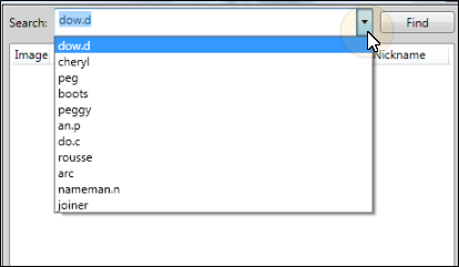 - Type all or part of the last name, first name, nickname, or primary ID number, or other search criteria you have enabled for finding patient folders (See "Search Options" for details). You can also use a combination of the beginning of the last name and the beginning of the first name, separating the two names or name portions with a period (i.e. dowl.cher). Or, click [V] beside the search box to select from your list of recently searched names. When your search string does not include a ".", the search will look at both sides of the string for matches. For example, if you can type 2331026 to find the phone number (515) 233-1026.