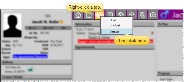 Choose Default Folder Page- You can select which page you see when you first open a patient folder. EachEdge Cloud operator can set up their own default page. To set up your default, open any patient folder. Then, right-click the tab you want to open first, and select the Default option. This tab will be your default whenever you open a patient folder on any Edge Cloud computer you log into.