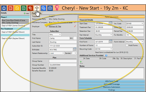 If you assign all orthodontics insurance benefits to the patient, insurance companies will not be contract members, and you will need to create orthodontics insurance records manually. This will provide a way for you to submit insurance forms on behalf of the patient.