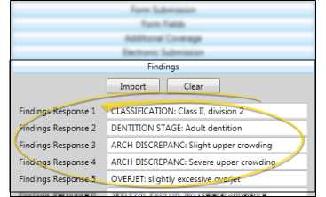 Import Treatment Findings - You can import the patient's current findings into the insurance record.